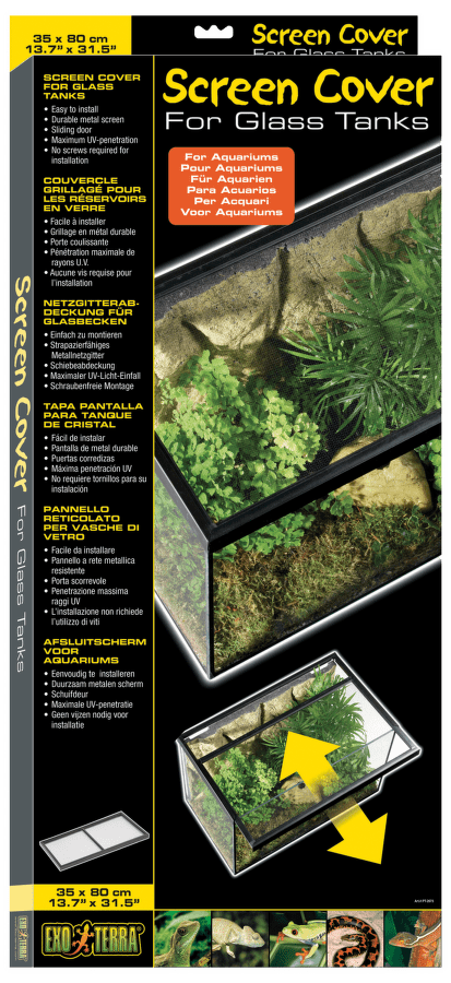 Aksesuārs terārijam - Exo Terra Screen Cover - stikla vāks terārijam. Stikla vāks dod iespēju labāk novērot dzīvi terārijā, mazina iespēju, ka rāpulis var aizbēgt, stikls ir caurlaidīgs UVA, UVB stariem, tas ir bīdāms, ērtāk barot un tīrīt terāriju.