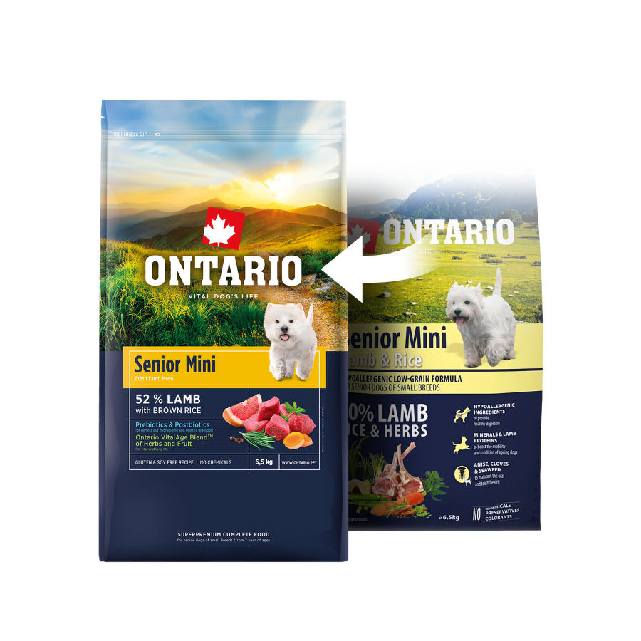 Barība suņiem – Ontario Senior Mini, Lamb and Brown Rice, 6,5 kg