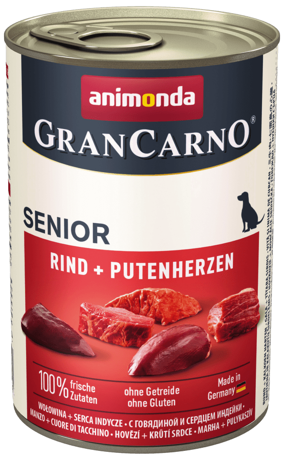 Konservi suņiem - GranCarno Senior Beef and Turkey hearts, 400 g.