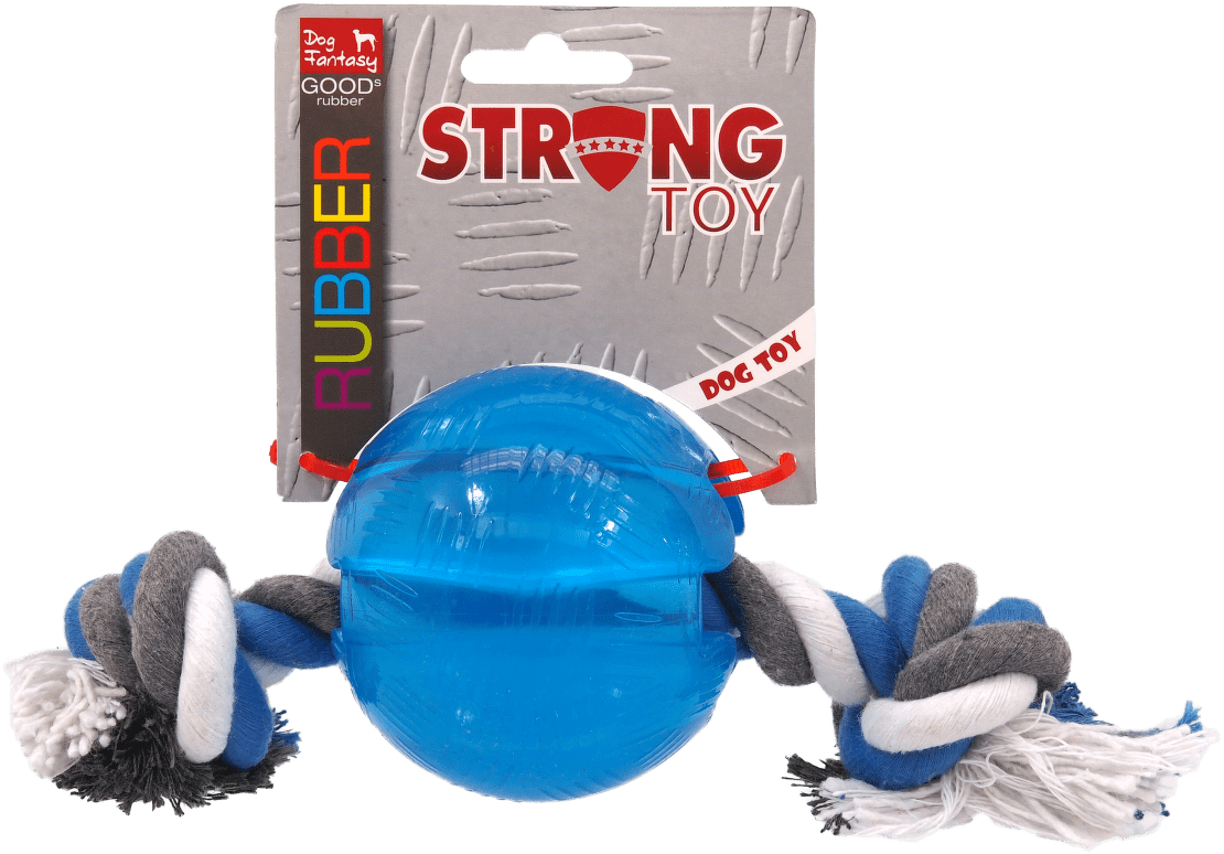 Rotaļlieta suņiem – DogFantasy Good's Rubber Strong ball with rope, 8,2 cm, blue.