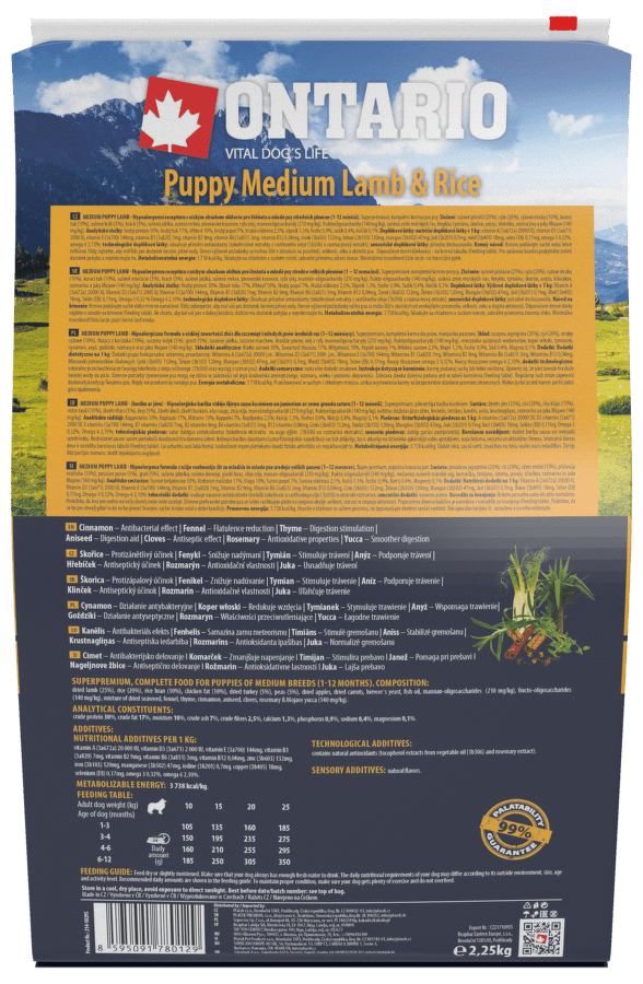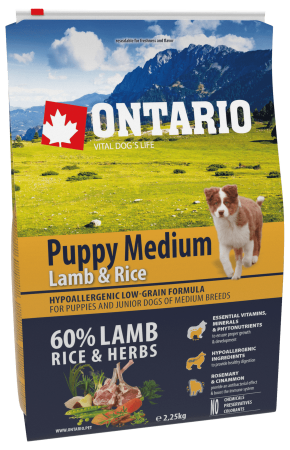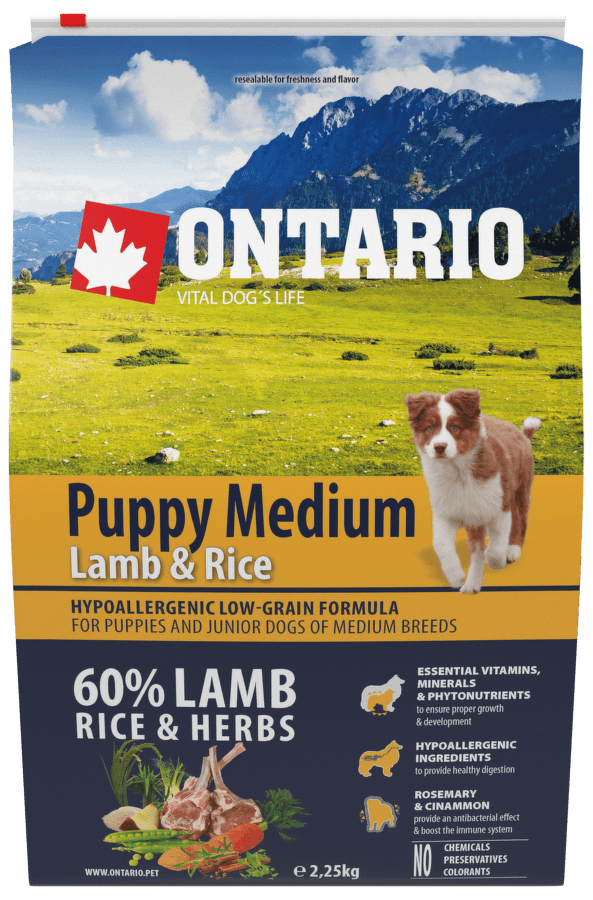Корм для щенков – Ontario Puppy Medium, Lamb and Brown Rice, 2,25 кг