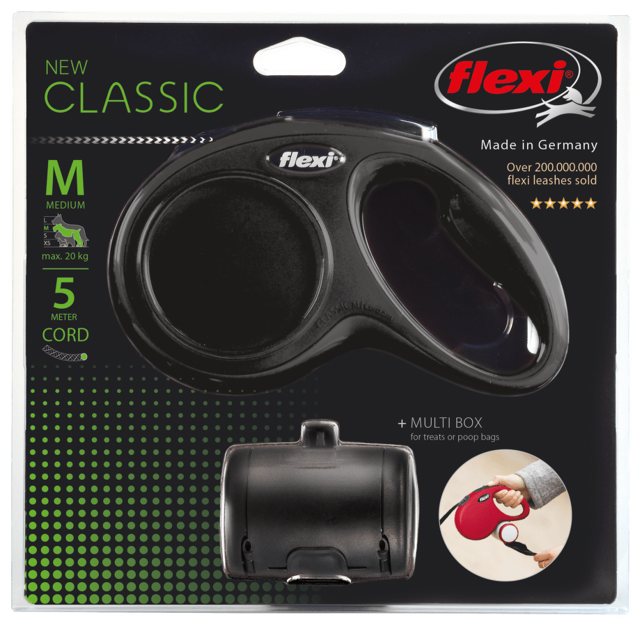 Поводок-рулетка для собак - FLEXI Vario Set + multi box - для собак весом до 20 кг, хромированная застежка, тормозная система с укороченной длинной хода, прочный корпус, хромированная застёжка, вес поводка: прибл. 220 г. В комплекте с Multi Box.