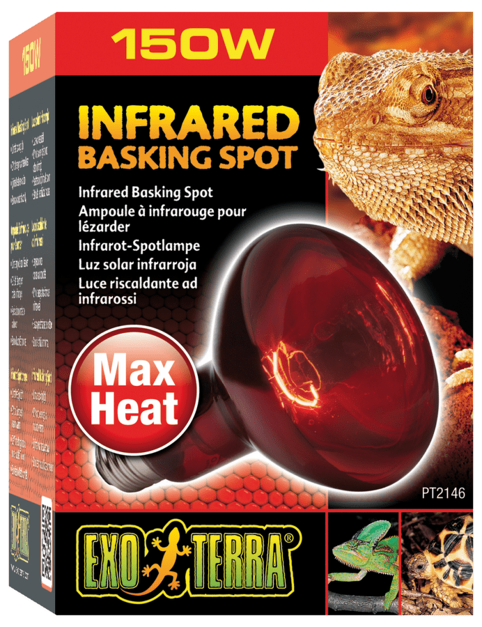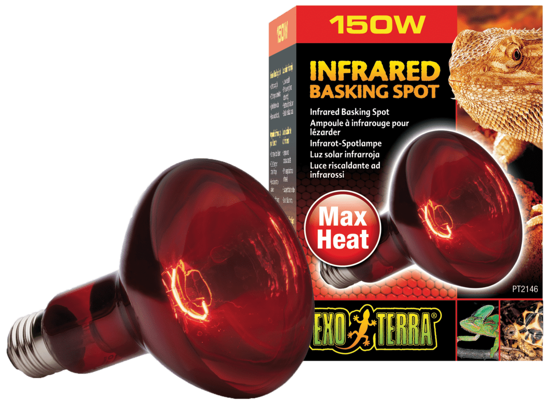 Лампа для террариума - Infrared Heat Glo 150W - излучает инфракрасные тепловые лучи и является одним из самых распространенных нагревательных приборов для террариумов. Лампа имеет специальный отражатель, чтобы направлять тепло в необходимую сторону. Красное стекло пропускает инфракрасные волны, вырабатываемые специальной нитью накаливания. Красноватый свет не помешает нормальному поведению животного не днем, не ночью, что позволяет использовать ее в качестве источника тепла 24 часа в сутки. Повышает температуру воздуха в террариуме. Хорошо подходит для наблюдений за ночными видами.